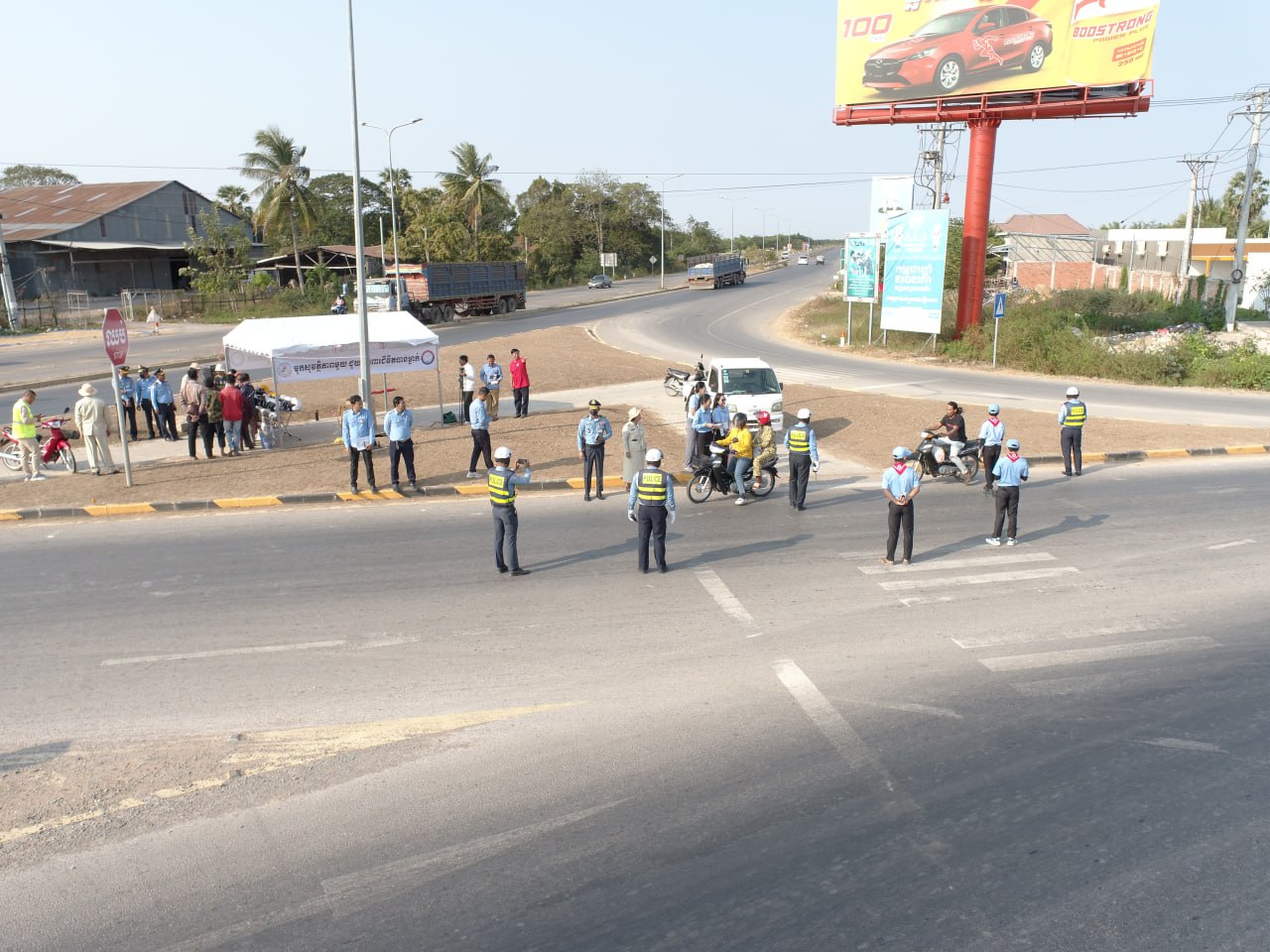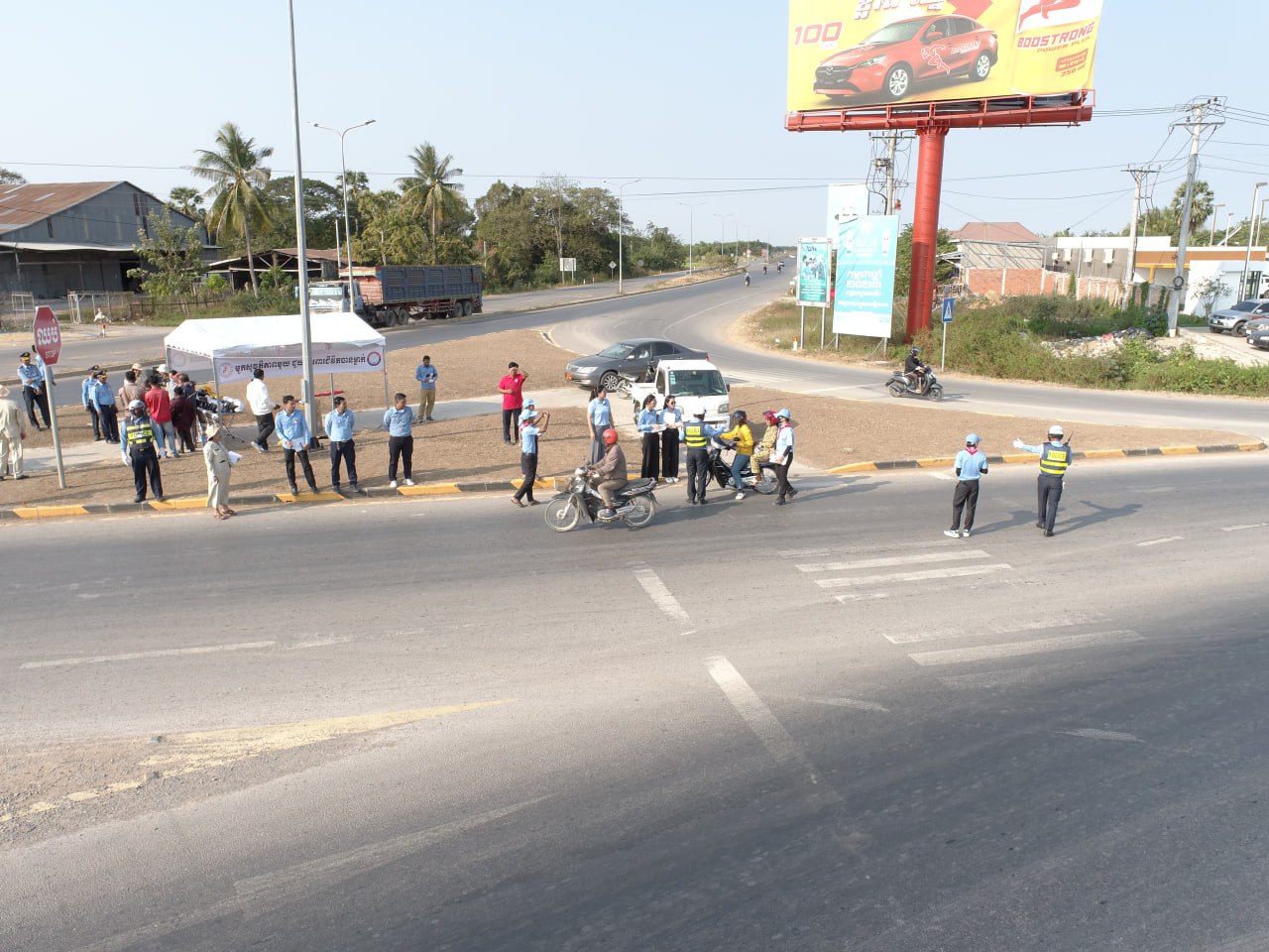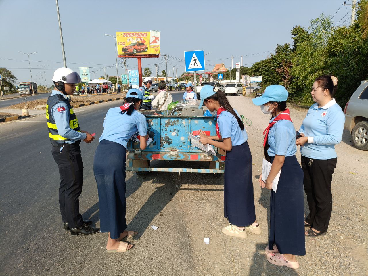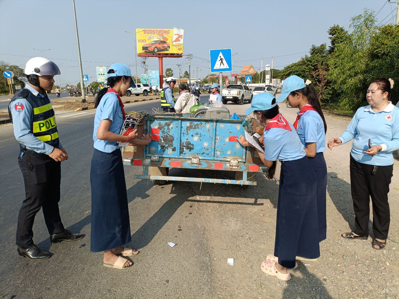 មន្ត្រីពាក់ព័ន្ធរួមមានមន្ទីរសាធារណការនិងដឹកជញ្ជូនខេត្តបន្ទាយមានជ័យបាន សហការជាមួយមន្ត្រីនគរបាលចរាចរណ៍នៃស្នងការដ្ឋាននគរបាលខេត្ត ក្រុមយុវជនកាកបាទក្រហមខេត្ត បានសហការគ្នាចុះធ្វើការអប់រំផ្សព្វផ្សាយនិងណែនាំដល់បងប្អូនប្រជាពលរដ្ឋដែលកំពុងតែបើកបរយានយន្តតាមដងផ្លូវជាតិលេខ៥ ត្រង់ចំណុចព្រះសព កែងច្រកចូលឃុំបត់ត្រង់ ក្នុងស្រុកមង្គលបុរី។ បើតាមការសង្កេតឃើញថា អ្នកបើកបរម៉ូតូត្រូវបានការពារតិចជាងអ្នកបើកបររថយន្ត ឬនិយាយម្យ៉ាងទៀតថា ការបើកបរម៉ូតូងាយរងគ្រោះជាងអ្នកបើកបររថយន្តដូចនេះនៅក្នុងការប៉ះទង្គិចគ្នាផ្តល់ឱកាសរងរបួសឬស្លាប់ភាគច្រើនជាអ្នកបើក។