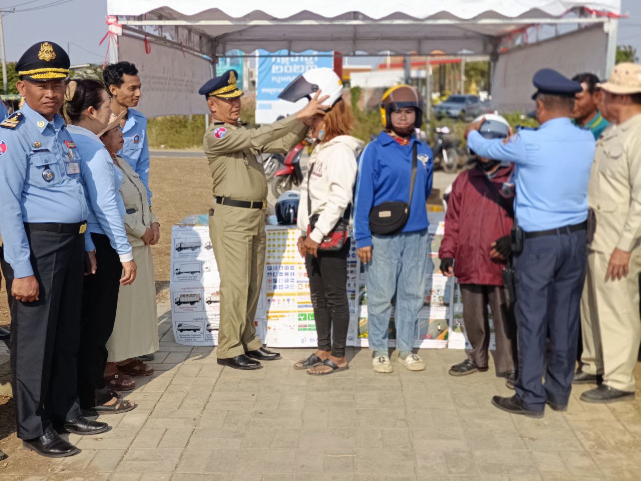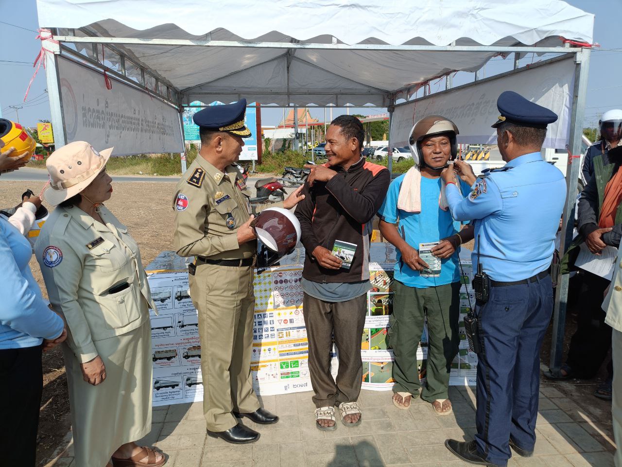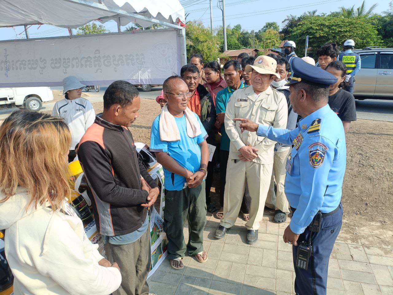 លោក ពុទ្ធញាណ ដារិទ្ធ ដែលជាប្រធានការិយាល័យសុវត្ថិភាពចរាចរណ៍ផ្លូវគោកនៃមន្ទីរសាធារណការនិងដឹកជញ្ជូនខេត្ត និងលោក គីមករា ប្រធានការិយាល័យចរាចរណ៍នៃស្នងការដ្ឋាននគរបាលខេត្តបានមានប្រសាសន៍ថា ការចុះអប់រំផ្សព្វផ្សាយសុវត្ថិភាពចរាចរណ៍ផ្លូវគោកក្នុងឱកាសបុណ្យចូលឆ្នាំចិនវៀតណាមនាពេលនេះ គឺក្នុងគោលបំណងឲ្យបងប្អូន តាមដងផ្លូវសាធារណៈ គោរពច្បាប់ថ្នាក់ចរាចរណ៍ បើកបរម៉ូតូត្រូវពាក់មួកសុវត្ថិភាពទាំងអ្នកបើកបរទាំងអ្នករួមដំណើរតាមរថយន្តត្រូវពាក់ខ្សែក្រវាត់ឲ្យបានត្រឹមត្រូវនិងបើកបរត្រូវចេះយោគយល់អធ្យាស្រ័យ ពិសេសបើកបរយានយន្តគ្រប់ប្រភេទដោយគ្មានជាតិស្រវឹង។ បើកបរដោយប្រុងប្រយ័ត្នគ្រប់វិនាទីការអត់ធ្មត់ចេះអធ្យាស្រ័យកាចាំឲ្យបានច្បាស់ថាការប្រមាថក្នុងការបើកបរគឺជាការប្រមាថដល់អាយុជីវិតរបស់ខ្លួនឯងក៏ដូចជាអាយុជីវិតរបស់អ្នកដទៃ។ អស់រយៈពេលពេញមួយព្រឹក មន្ត្រីដែលបានធ្វើការចុះអប់រំផ្សព្វផ្សាយនេះយើងសង្កេតឃើញមានបងប្អូនប្រជាពលរដ្ឋមួយចំនួននៅតែពុំទាន់គោរពច្បាប់ចរាចរណ៍នោះឡើយ ពិសេសមិនពាក់មួកសុវត្ថិភាព ក្នុងនោះលោកឧត្តមសេនីយ៍ត្រី ង៉ាន់ ចិន្ដា ស្នងការរង ខេត្តក៏បានប្រគល់មួក សុវត្ថិភាពជូនដល់បងប្អូនប្រជាពលរដ្ឋផងដែរ៕